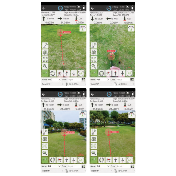 Staking-out i zhytur në skenën reale, me udhëzues Dual AR nga larg në afër; kalim në pamje AR të afërt rreth 5 m (distancë e rregullueshme). Shfaqje e qartë në kohë reale 360° edhe nën dritë të fortë në ambient të jashtëm, duke kombinuar të dhënat e projektimit me imazhet reale – çfarë sheh është ajo që merr. Lentë në nivel imazhi, me shtrembërim optik minimal, e kombinuar me algoritme profesionale, për të arritur saktësi 1 cm në gjetjen e pikës në skenën reale.