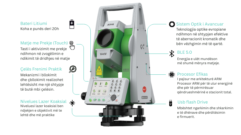 Tast funksioni i personalizueshëm lejon konfigurim sipas nevojave tuaja për një stacion total të personalizuar.